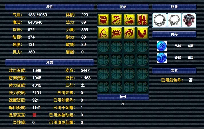 梦幻宝宝求分析 这个宠如何 。感觉是废了 点击展开 匿名用户 2015-08-15 22:40 满意回答 野生的 虽然全红 但是69的宝宝本身属柿乔性点就少再少50就脂概比较重要了资质阶脑用也不咋样为何全红 匿名用户 2015-08-15 23:15 宝宝知道提示您:回答为网友贡献,仅供参考。 相关问题 玩过梦幻的进来——谁帮我分析分析这个梦幻宝宝资质到底好还是不好,好,好在哪,不好,不好在哪 梦幻宝宝打书 梦幻宝宝可以打几个高内丹