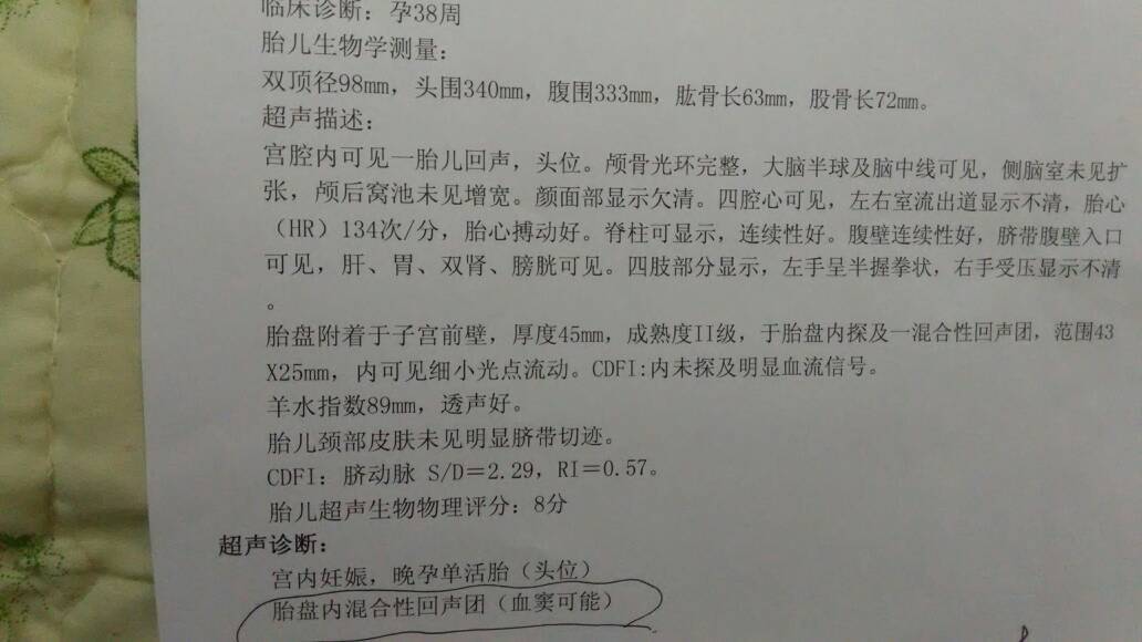 你们那里的B超写的好详细,不过这宝宝头有点偏大、我这个39周96医生都说了偏大,胎盘还没成熟,才二级、