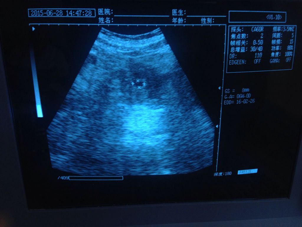 您好。根据您的B超检查孕囊大小8毫米。提示怀孕基则哑侨寸大约38天左右。孕囊内没有看见胎芽胎心。如果倘筝仅根据今天一次的B超检查,还不能确定胚胎发育是否正常。需要再进一步观察。建议卧床休息,禁止性生活。7天以后再次复查B超。