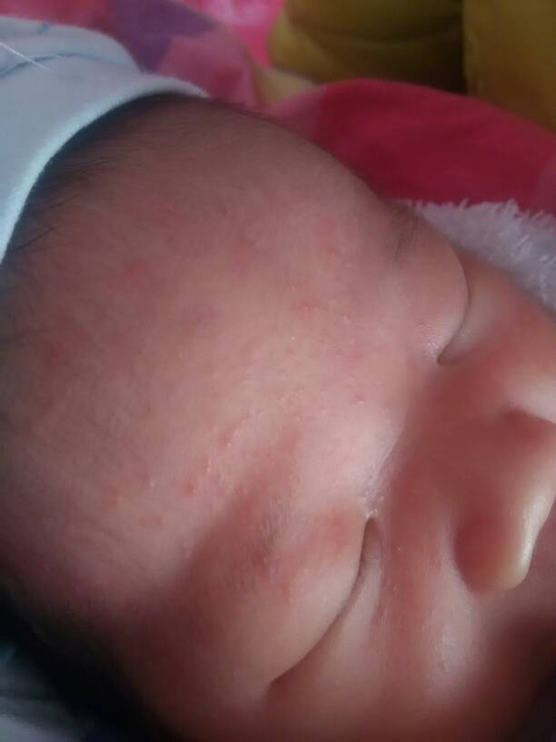 从图片上看 ,主要是湿疹现在不是很多,可以不用处理,一般大一些就能好的,要注意观察 ,多喝水,多的话再处理
