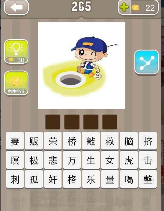 疯狂猜成语一个小孩拿着袋钱在跑前面有个坑 疯狂猜成语求答案 点击展开 匿名用户 2013-07-08 00:46 满意回答 乐极生悲^_^ 匿名用户 2013-07-08 00:52 宝宝知道提示您:回答为网友贡献,仅供参考。 相关问题 疯狂猜成语答案大全一个坑一个小孩 疯狂猜成语2答案大全有小孩在哭 疯狂猜成语,第163关的是一对双胞胎