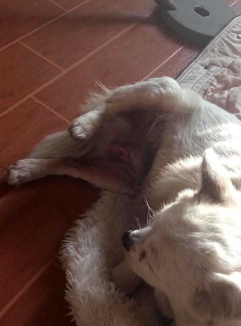 今天我放寒假回家,发现狗狗不理我,我问我家人说狗狗生病了,我一看,狗狗乳头那里有一个洞,很吓人,怎