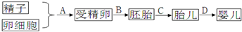 如图表示人体在母体内发育到婴儿出生的过程.请根据题意回答问题:(1)A过程称为-,在母体的