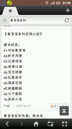 求巧仙秦宝宝系列 武侠小说十本全集 点击展开 匿名用户 2020-11-05 06:05 满意回答 我有,但是没有这个《绝毒断肠》。这本书本就不存在。 匿名用户 2020-11-15 09:31 宝宝知道提示您:回答为网友贡献,仅供参考。 为您推荐: 其他回答 这个是李笑佛的书 匿名用户 2020-12-05 04:15 相关问题 求一套秦宝宝系列的武侠小说 有本武侠小说忘了只记得里面最后结尾主角建立了不夜城 求一本男主角穿越到古代的武侠小说,里面好像有4个双胞胎侍女服侍他的