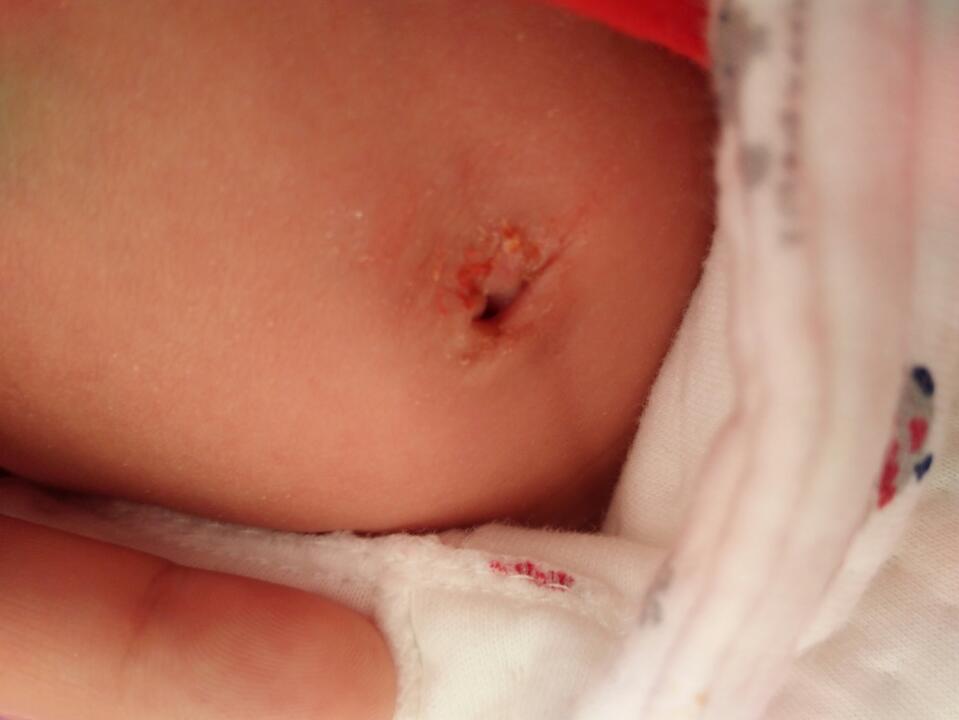 你好,你家孩子这个也得考虑脐炎,目前没有明显的分泌物,建议不要用红药水,用点百多邦。