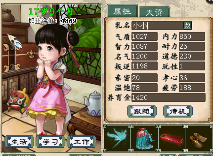 你这个孩子的目标也不是神结局,增加什么都可以,没必要非得增加内力。 想增加就得学习,也没别的办法啊,到成年还有至少7次操作,如果只增加内力,把内力弄...