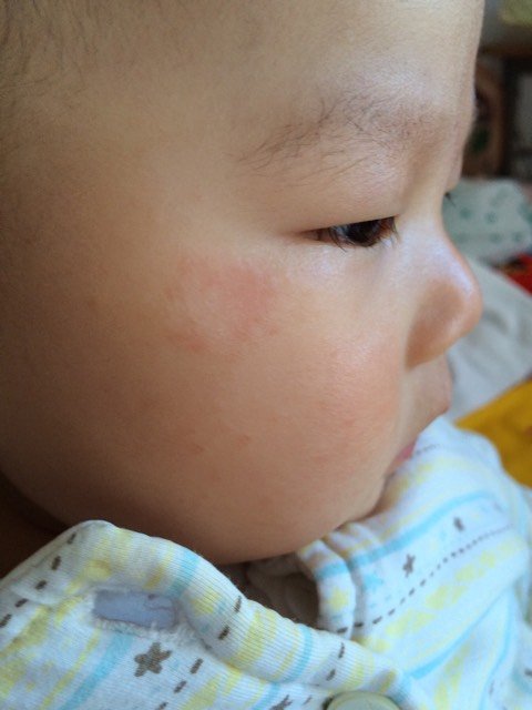 帮忙给看下宝脸上起的什么,有半个月了还不下去,会不会是湿疹,皮炎之类的啊 心焦