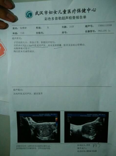 10月30号末次月经,(之前两个月月经就有推迟10多天的现象)12月13检查怀孕了。昨天开始有一点点出血,今天B超结果这样,医生说宝宝发育不正常,说正常应该有1.5cm,是真的吗??有没有可能是我的宝宝受孕晚些所以长的慢?