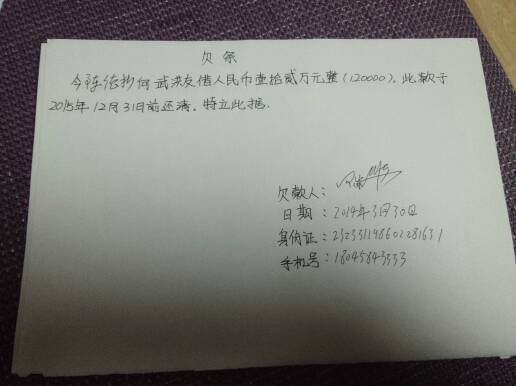 亲们,帮我看一下,这样写的欠条生效么?急急急!拜托谢谢了亲们! 亲们,帮我看一下,这样写的欠条生效么?急急急!拜托谢谢了亲们! 点击展开 小芒果儿! 2015-02-18 00:46 为您推荐: 其他回答 最好是有公证人。 洋🐑 2015-02-18 04:27 此借条不受法律认可! 风雨8714 2015-02-18 02:42 怎么没有指纹吖。 189*****273_atBP 2015-02-18 02:33 按上指纹,但是他如果没钱换借条也没用 上官怡汐(vivian) 2015-02-18 02:27 要有双方的指纹 138*****572_O3E2 2015-02-18 02:02 加载更多 相关问题 孩子借别人的钱打的欠条让父母还法律生效吗 和女朋友分手,她要我写下人流手术费的欠条,但实际金额与欠条上的差很多,这样的欠条有没有效 老婆家在打了我的情况下叫我写了欠条,写了房子转给小孩有法律保护吗