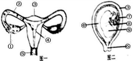 下面图一和图二分别是女性生殖系统和胎儿发育示意图.请据图回答下列问题:(方框内填序号,横线上填文字