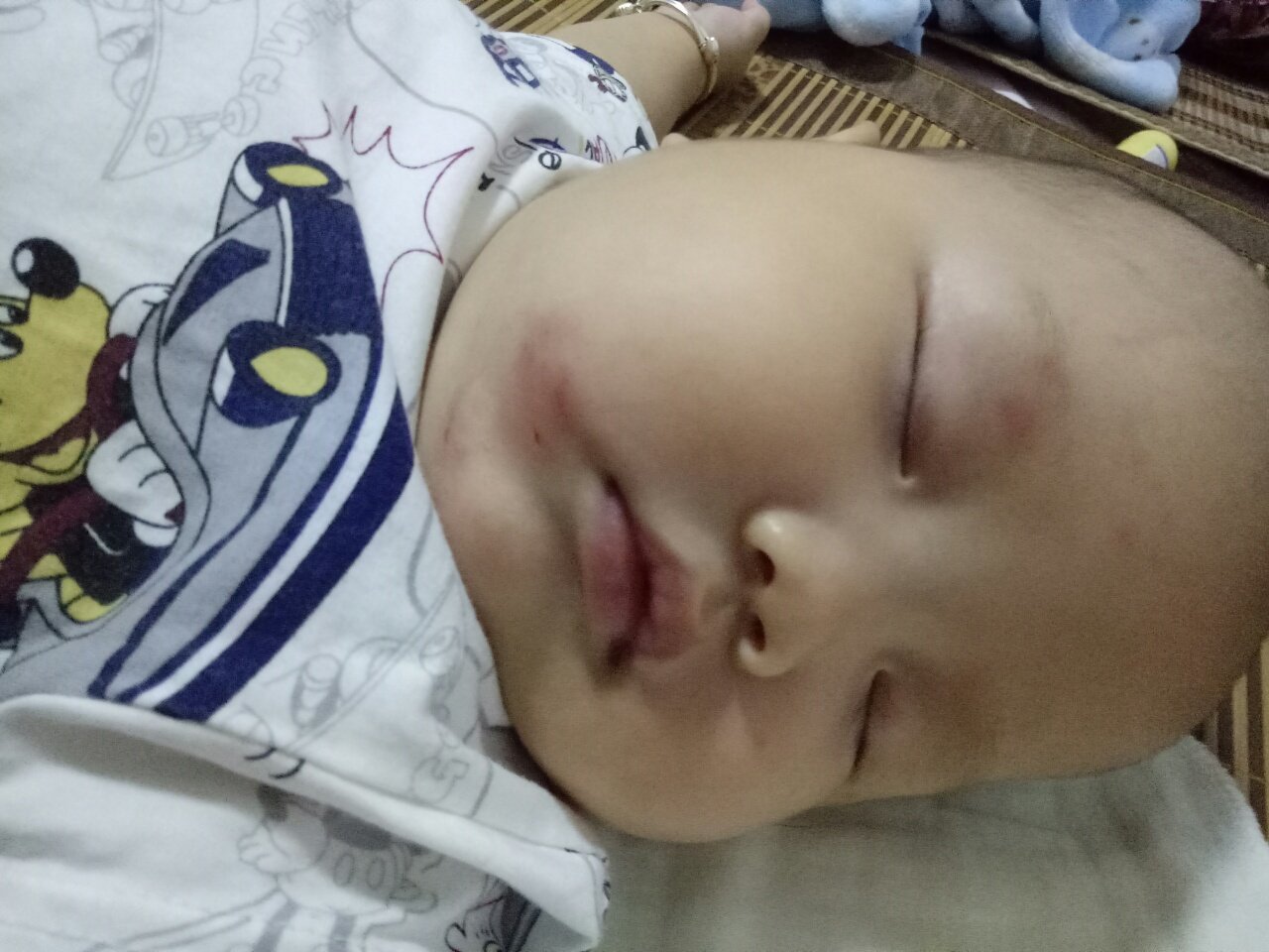 宝宝刚刚从床上摔下去了,脸朝下,床离地面不会很高,但是左边下巴有伤,还有两个小口子,头上面也红了