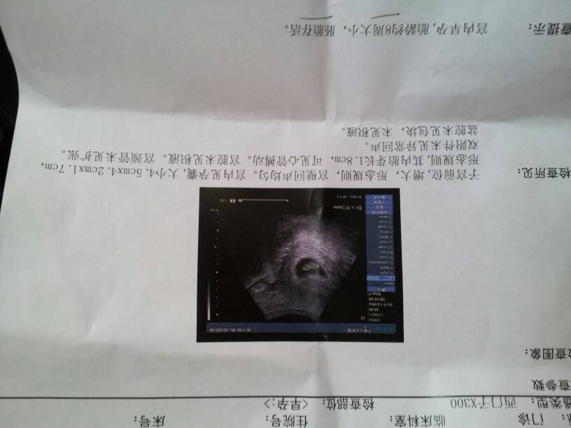 医生帮我看看,未次月经5月18号,六月13号吃了两粒甲哨唑胶囊后才发现杯孕,这是今天的B超单
