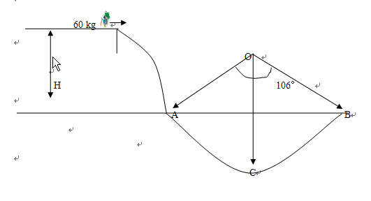 A、B为圆弧端点,其连线水平。已知圆弧半径R=1m,对应圆心角为106°,平台与AB连线的高度差为0.8m。小孩运动到圆弧轨道最低点C时速度V=根号下30 m/s。取g=10m/s,sin53°=0.8,cos53°=0.6。求1.C点对小孩的支持力F2.小孩水平飞出的初速度3.A到B得过程中,小孩克服摩擦力做功W是多少?