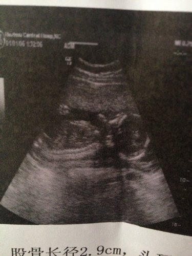 胎儿双顶径4.3cm,股骨长2.9cm,胎心率152 羊水深度3.3cm!胎儿是否正常 能知 道是男宝还是女宝吗 点击展开 匿名用户 2013-07-29 12:36 为您推荐: 其他回答 您好,胎儿的B超显示宝宝4个多月,发育还好,现在宝宝生殖器已经分化完全,但是B超上看不出是男女,没有照到那个部位,这张是宝宝头部和身子的图像。 罗lili 2013-07-29 12:39 相关问题 我怀孕5个月了,双顶径4 8cm,股骨长3 3cm,胎心率136次/分,羊水深度3 7cm,请问正常吗? 孕35+3,双顶径7 7㎝,股骨长6 3cm,胎心率138 /分,羊水深度5 6㎝,正常吗?胎儿大 怀孕七个半月双顶径约8 0cm股骨长约5 8cm胎儿心率139/分羊水最大深度约60cm 这样正常吗?宝宝大概有多大