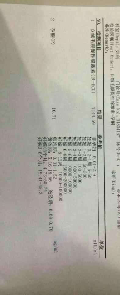 专家您好!我怀孕40天时孕囊不明显,41天时流少量褐色分泌物两天,无腹痛,54天时早上又流一点褐色分泌物,无腹痛,55天见孕囊,无胎芽胎心,医生先开了保胎药,让我一星期后复查,晚上抽血化验结果显示hcg和孕酮都较低