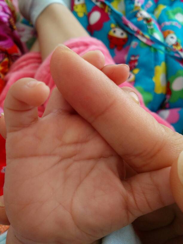 宝妈们帮忙看看宝宝这算是断掌吗?今天才发现宝宝右手掌纹竟然是这样的 宝妈们帮忙看看宝宝这算是断掌吗?今天才发现宝宝右手掌纹竟然是这样的 点击展开 丸子!! 2015-04-23 16:38 为您推荐: 其他回答 不是,,, 台头、念你 2015-04-23 17:39 是的,所以別在意 1439125515 2015-04-23 16:55 当然这些都是老辈们的传说 1439125515 2015-04-23 16:47 嗯,不会被克 1439125515 2015-04-23 16:46 没事的呀…… 羽诺ping790658 2015-04-23 16:45 加载更多 相关问题 宝宝第十天,今天按宝宝的小肚皮,感觉硬硬的,是不是小宝宝都这样,宝妈们帮忙看看你们家的小宝宝也是这 今天检查的,宝妈们帮忙看看宝宝大概多重? 今天刚去照的,宝妈们帮忙看看有什么问题没