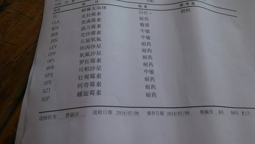 请问这是什么意思 请问这是什么意思 点击展开 ╮╯冷言冷语冷温柔 2014-07-09 15:57 为您推荐: 其他回答 你好,这个应该是培养加药敏,是说您存在支原体感染。标注耐药的抗生素效果不好,标注中敏的药物效果一般,标注敏感的药物应该治疗效果最好。 无诛斋主 2014-07-09 16:52 相关问题 请问这是什么意思?结果是什么? 请问这b超是什么意思呀?