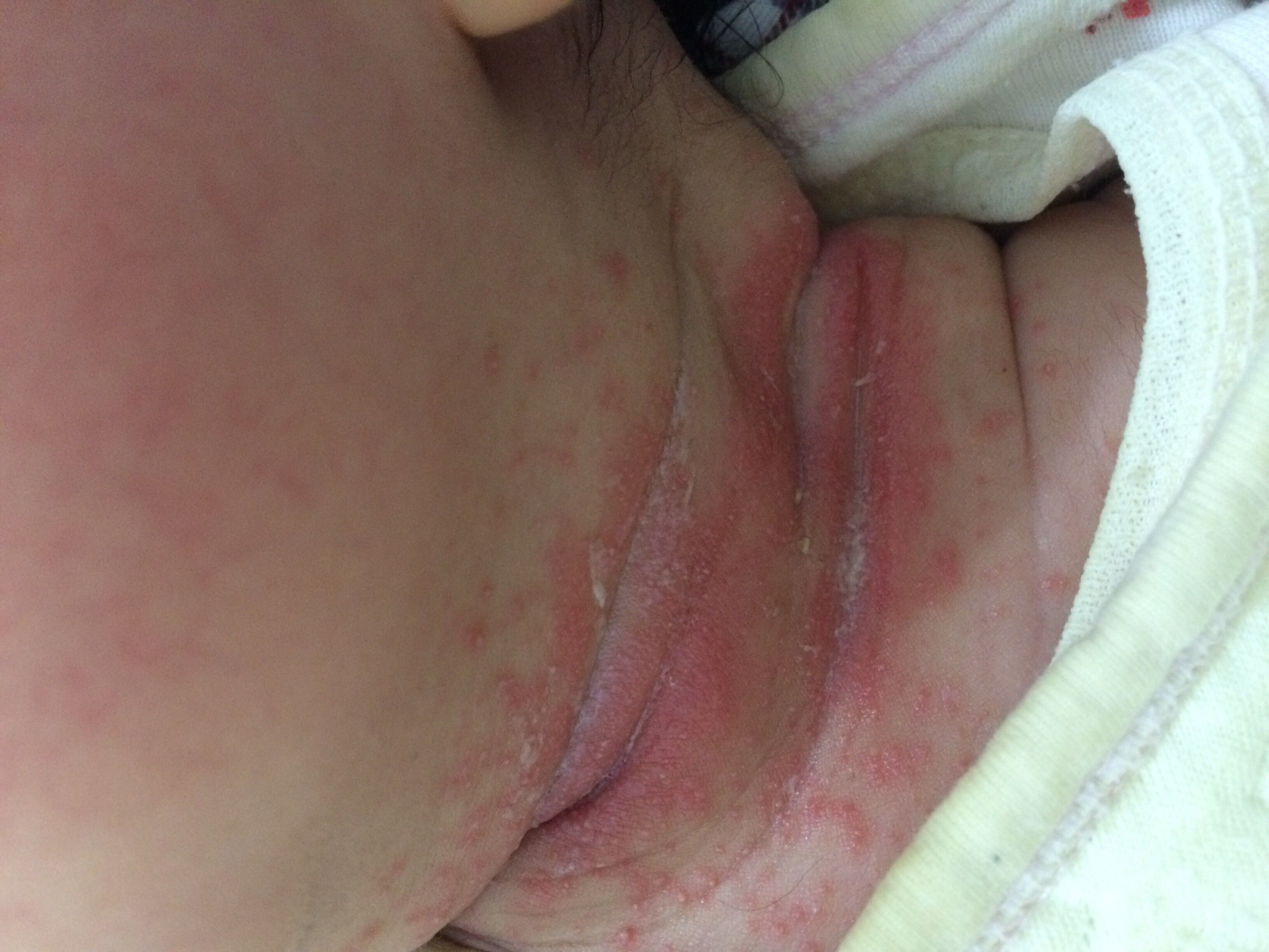 二十多天新生儿脖子上长红斑白尖的红疙瘩,一片一片的,要怎么办啊??急急急