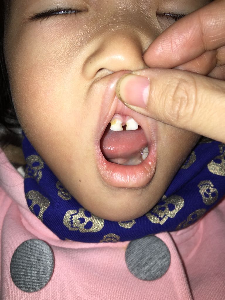 孩子4岁前面上方2个大门牙 之间稀今天早上说门牙之间鼓了个小肉总会碰到 疼请问是怎么了?用