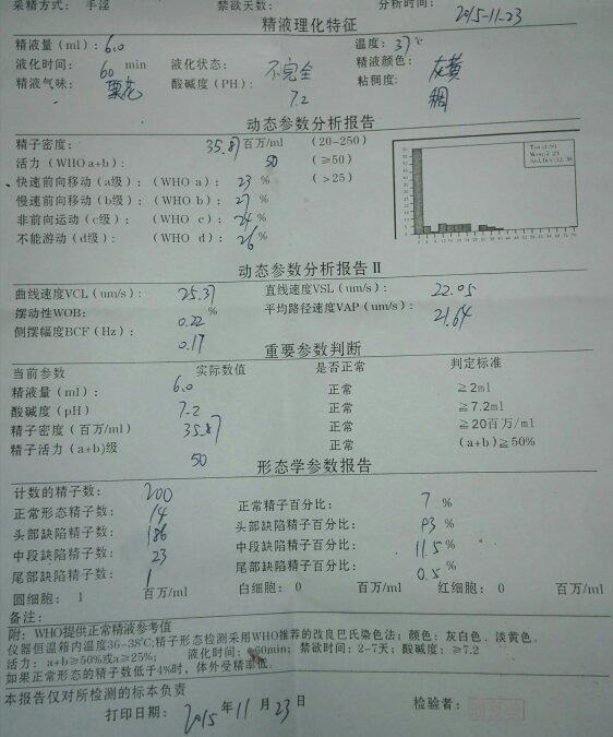 本人29岁,今天刚做了精子质量检测,但不懂上面参数,请问医生我的精子检测报告正常吗?准备要宝宝,需
