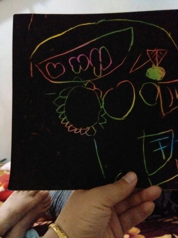 请问这是什么纸,上面全是黑色的,用笔一画就有颜色了,后面是卡通图画,前面是宝宝乱画的 点击展开 匿名用户 2015-05-22 16:47 为您推荐: 其他回答 黑色卡纸 匿名用户 2015-05-24 18:35 是刮画纸。 匿名用户 2015-05-22 20:30 印刷卡通图画纸 匿名用户 2015-05-22 16:48 相关问题 宝宝一周岁总喜欢用笔在纸上乱画,是怎么回事 我弟七岁,从小别的孩子画画都画晴天大太阳,他却从来不画太阳每幅图画都是下雨 这是为什么? 语文作业孩子和蜗牛第2自然段仔细描绘了孩子画的图画!有何作用