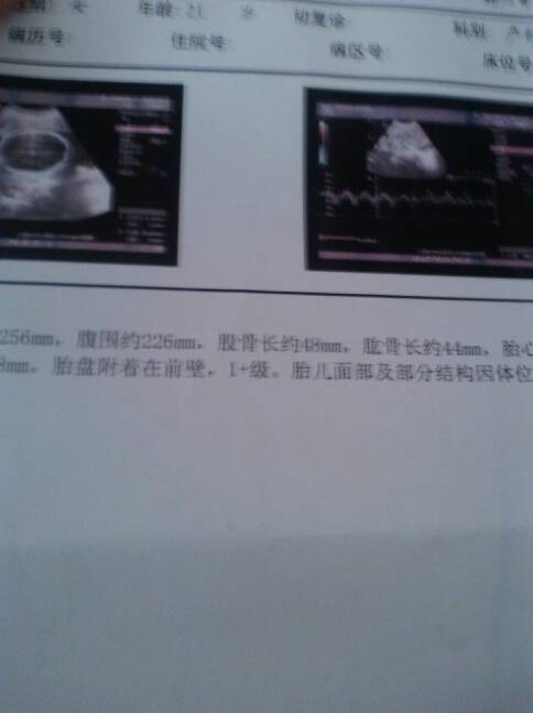 双顶径约69mm,头围约256mm,腹围约226mm,股骨长约48mm,肱骨长约44mm,胎心率约 双顶径约69mm,头围约256mm,腹围约226mm,股骨长约48mm,肱骨长约44mm,胎心率约143次/分,最大羊水指数约108mm,胎盘附着在前壁,1+级,胎儿面部及部分结构因体位,及孕周关系显示不清。求医生帮看看胎儿大小?? 点击展开 轩涵乖乖 2015-06-08 11:07 为您推荐: 其他回答 祝宝妈好孕 1325478555 2015-06-08 15:25 问医生大概多大 苦涩的人生 2015-06-08 12:11 祝宝妈好孕 H哥哥啊i💪 2015-06-08 12:08 祝宝妈好运 馨馨的妈妈好宝宝 2015-06-08 11:38 愿宝宝健康! 我爱大宝贝 2015-06-08 11:16 加载更多 相关问题 孕35周胎儿心率152次/分双顶径约88mm头围约311mm腹围约305mm股骨长约69mm肱骨长 双顶径44mm头围约165mm腹围约138mm胎心率约156次/分股骨长约32mm肱骨长约29mm胎盘附着于后壁想知道男孩女孩 双顶径61mm头围224mm腹围200mm一侧股骨44mm一侧肱骨42mm胎心率14