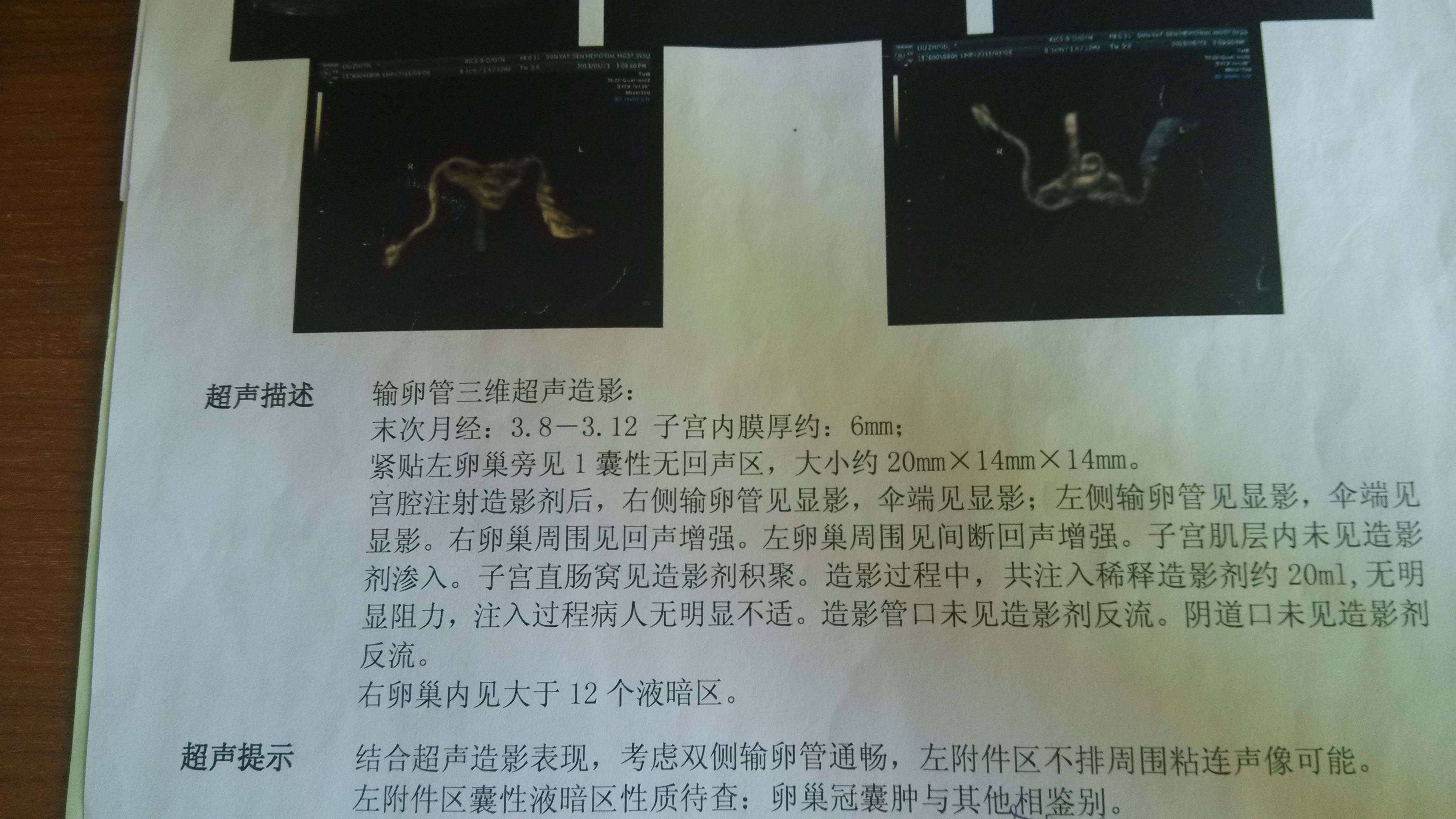 治愈不孕不育 男正常,女方做了三维超声造影,如图 1、左侧输卵管怀疑有粘连可能,如果右侧明显通畅