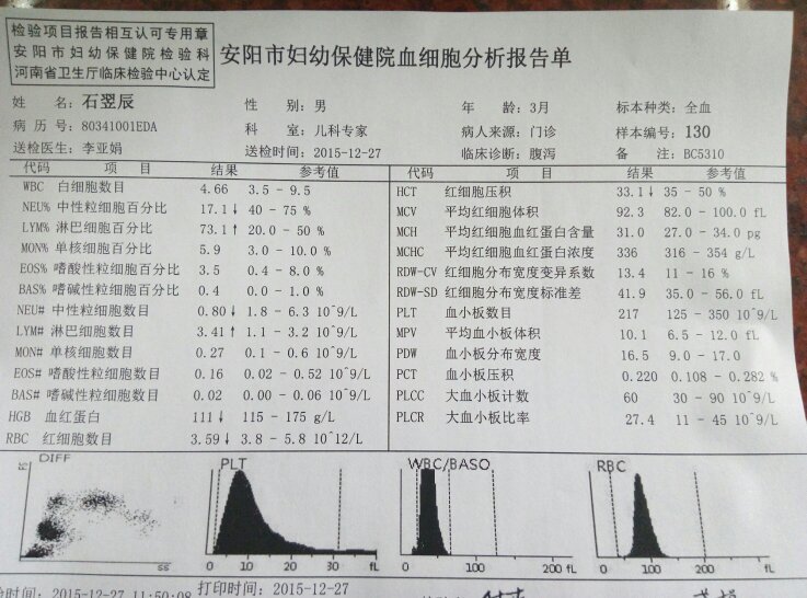 希望有谁能解释一下这两张化验单什么意思 小孩三个月了,体温36.9,拉肚子5天了,母乳喂养 点击展开 匿名用户 2015-12-27 21:02 满意回答 按你化立密验来看是肠炎,挤航毫但是没有查轮状病毒,目前可以先把貌唤益生菌跟蒙脱石加上,效果不明显的话可以用抗生素了 小五音不全郎 2015-12-27 22:19 宝宝知道提示您:回答为网友贡献,仅供参考。 相关问题 我老婆怀孕8个多月,昨天开始拉肚子(一天6-7次),早上起来测体温是37 5度,还带呕吐!各位亲亲帮帮忙! 2岁宝宝拉肚子!体温36 1!打了役苗没事吧 我家宝宝15个月拉肚子体温35 5度可以用生姜和红糖谁喝吗