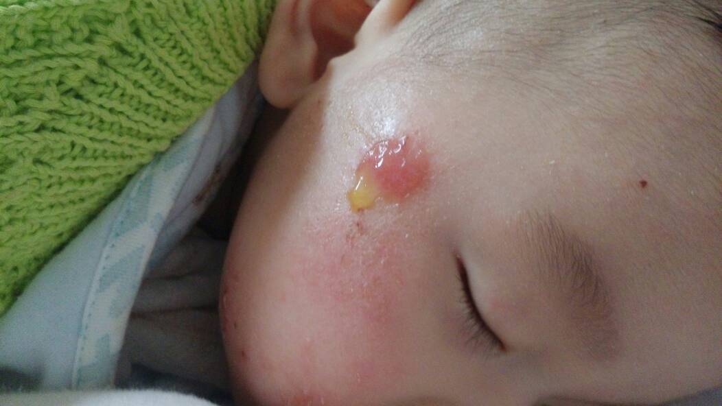 五个多月宝宝,脸上化脓流黄水,原先被指甲挠破流水结痂,用过伤口消毒和百多邦 请问这情况严重吗?会留