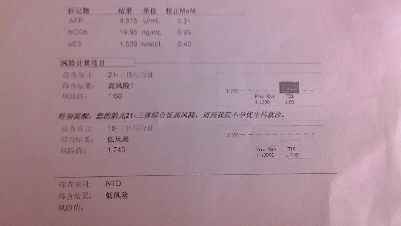 我做唐筛检查21三体综合征检查结果为1:60,求帮助!~