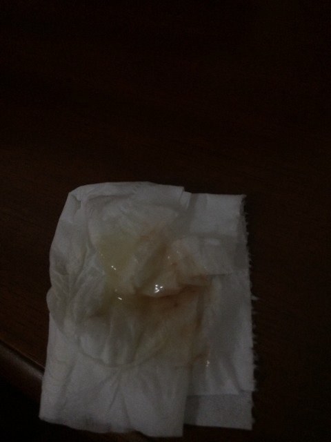 昨晚11点多起来刚解完小便后,流出一团鼻涕样的东西,上面还带了点血丝,(如图)然后腰就酸痛了一晚上。现在感觉腰是一阵阵的坠痛,腰痛得厉害时,就感觉小腹也有点阵痛。今天的预产期,有经验的宝妈这是要生了吗?刚刚宝宝还在肚子里打嗝!