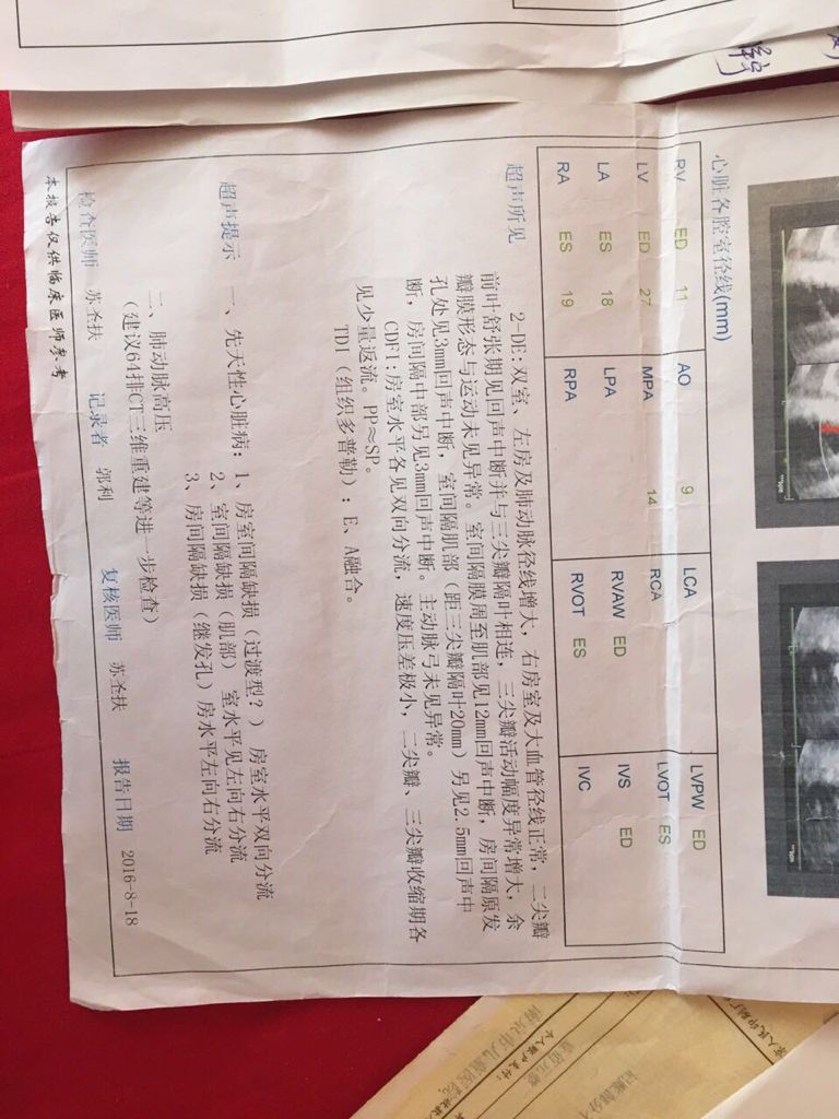 初生婴儿 先天性心脏病 宝贝女儿 很急 附上心彩超 点击展开 匿名用户 2016-10-11 01:24 满意回答 如果宝宝出现你所说的情况沃过,一般来讲的话炼哑截,这种情况下,应该是很严重的,宝宝的心脏病,应该是比较复杂的,这种情况下没什么好办法,一班是先天发育异常引起来的,可能会需要患垃给宝宝手术治疗的 120 2016-10-11 05:31 宝宝知道提示您:回答为网友贡献,仅供参考。 相关问题 初生婴儿吃奶吃一下又要喘下气才吃正常吗睡觉时也喘气粗,会是先天性心脏病吗? 我3月29号剖腹产生下我的宝贝女儿,可是到55天她因为先天性心脏病 支气管肺炎 胸椎侧弯和左侧胸廓 彩超胎儿左心室内强回声光点是先天性心脏病吗?