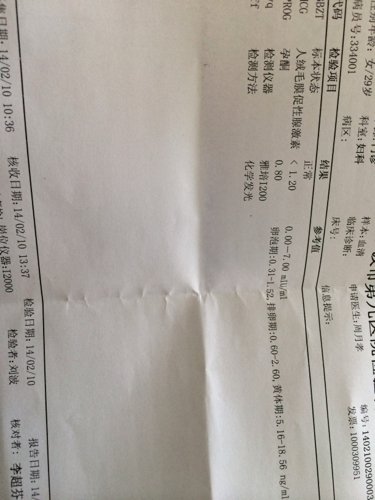 麻烦医生看一下这个化验单吧,月经过了时间没来,测出来是这样的,说明什么?月经快来了吗 点击展开 匿名用户 2014-02-10 15:01 为您推荐: 其他回答 病情分析: 根据您上述描述的情况不知道您平常月经正常吗?不知道您现在月经推迟几天做的检查呀? 指导意见: 您发过来的图片我看不太清楚,我建议您最好在发一张这个检查图片,并且并且补充一下,希望能够帮助到您。 匿名用户 2014-02-10 15:05 相关问题 医生、、麻烦问问、生完孩子多长时间来月经?孩子吃着母乳的! 末次月经是4月20号,我是5月1号结的婚,医生又说我受孕比较晚,那现在应该是怀孕多长时间?预产期是 未次月经7 9来的,查了三次宝宝都不见胎心,医生要我流掉,可我不想放弃~心查可能宝宝受孕时间还小
