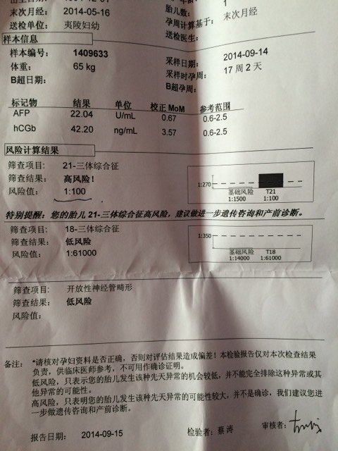 你好:唐氏筛查结果21三体综合征高危并不意味着胎儿一定有问题,而是胎儿患有唐氏综合症的几率较大,需要确诊胎儿是否为唐氏综合症患儿,目前明确诊断最常用的技术是羊膜腔穿刺技术,羊膜腔穿刺适宜孕16~20周的孕妇。 现在的医疗条件下,大点的医院做羊膜腔穿刺技术都比较成熟了,导致流产或穿刺到胎儿的风险较小。