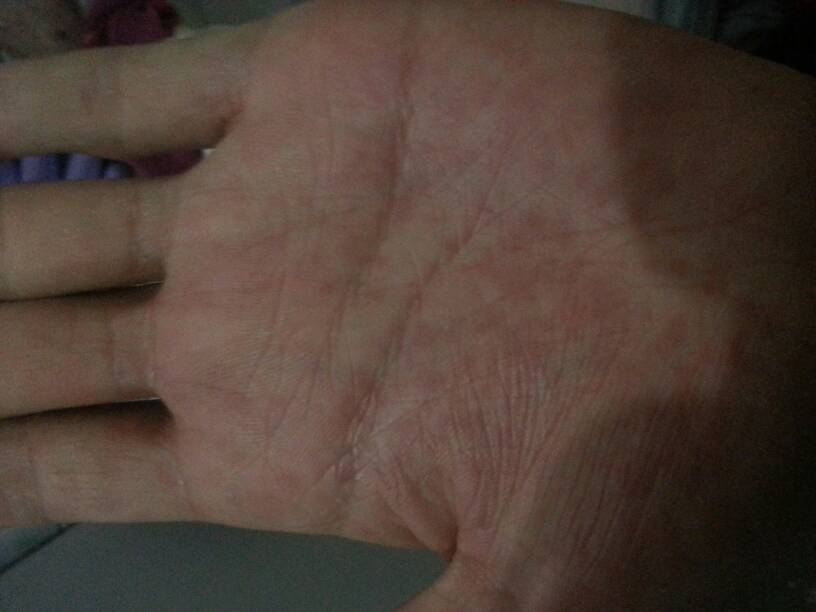 手掌的全手掌出现红斑的话,可能是肝掌。 红色斑点,或是斑块,加压后变成苍白色.这种与正常人不同的手掌称为肝掌。 出现肝掌不一定都有肝病.临床上往往见到不少健康人也有肝掌,但经过多年后的观察,肝脏功能一直正常,从未出现过肝脏病变。 不过,因为不了解你的具体情况,也不知道你是否做过相关检查,也不能准...