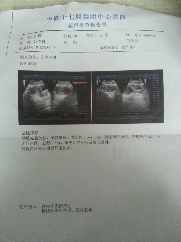 前辈门给看看这个是宫外孕,还是先兆性流产 今天我媳妇出血了… 点击展开 匿名用户 2014-11-07 16:07 为您推荐: 其他回答 你好,宫外孕的表现为停经,腹痛,阴道出血,B超看不到孕囊考虑为有宫外孕的可能性 这种情况建议可以考虑过几天再次复查下B超和HCG值,如果是确定为宫外孕要及时进行处理,这个是不能继续妊娠的 刘猛医师 2014-11-09 17:04 相关问题 请求帮助:宫外孕或先兆性流产 怀孕一个月左右后自然流出蜕膜组织会有什么后果?是流产的先兆还是宫外孕的可能性大些?? 八月查出流产性宫外孕后没有治疗血HCG值正常10月6日来月经大概15日到月底又少量出血末次ML11月6日可能怀孕
