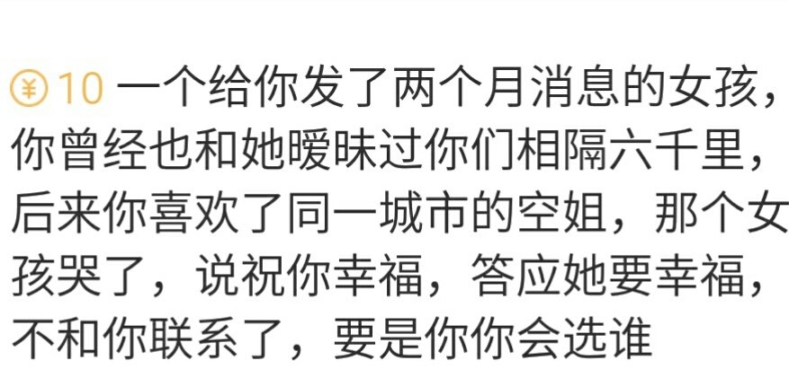 第一张第三张是同一个女孩,要是你们怎么选,空乘不知道喜不喜欢我,有好感,这个女孩很喜欢我 点击展开 匿名用户 2016-03-14 07:36 推荐回答 选爱你的,空姐不靠谱啊 匿名用户 2016-03-14 07:40 宝宝知道提示您:回答为网友贡献,仅供参考。 为您推荐: 其他回答 。。。。。你会上来问就证明,你两个都不喜欢。连这种事都要问别人,你是高中生吗?! 匿名用户 2016-03-14 08:10 哭泣的女孩 匿名用户 2016-03-14 07:58 第三个 匿名用户 2016-03-14 07:43 选空姐啊。至少每天性福。 匿名用户 2016-03-14 07:42 加载更多 相关问题 我喜欢一个女孩,她也对我有好感但我更喜欢的是另外一个女孩,但她不喜欢我,我该如何是好 一个成熟的男的对一个女孩有好感,但是不是喜欢这个女孩,不喜欢也不讨厌,这个女的的在这个男的心里?? 女孩对陌生男孩有好感是什么样的