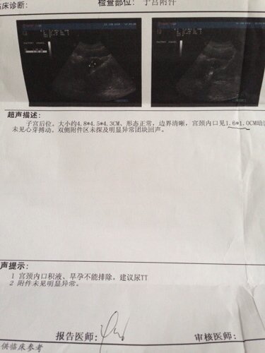 怀孕32天!早上白带咖啡色并伴有一点血色!害怕是宫外孕!去医院做了B超!第一次没检测出,后来憋尿!