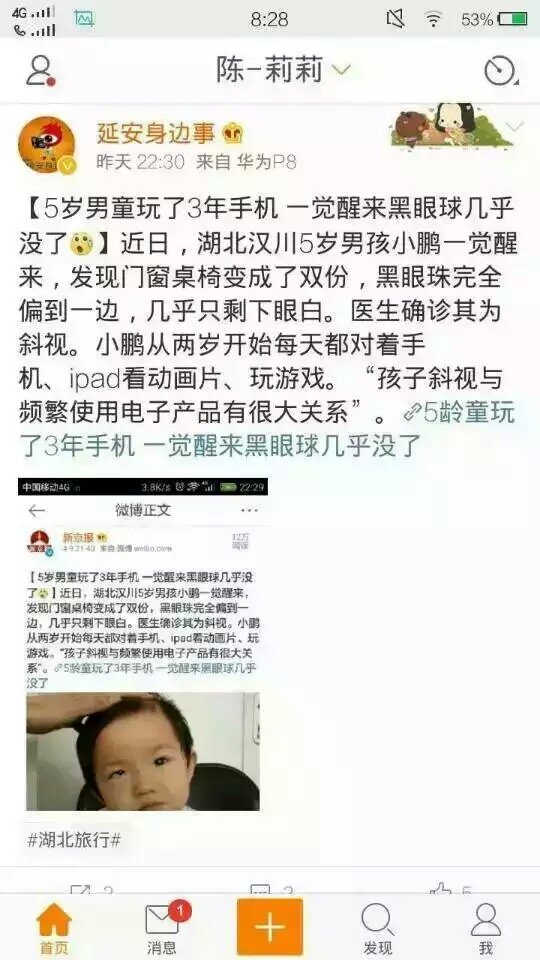怎么办?现在小孩喜欢玩手机?新闻里面报玩手机眼睛都病了… 点击展开 匿名用户 2016-04-10 20:20 推荐回答 你好笼葛厉! 这种你可以考卜它虑给孩子买个早教平板嘛!既可以让孩子学习,又能控制孩子离屏幕的距离,保护眼睛,最重要的是,可是控制孩子使用的时间,这些绣安多少手机给予不了的。 匿名用户 2016-04-10 20:25 宝宝知道提示您:回答为网友贡献,仅供参考。 为您推荐: 其他回答 游戏可以卸载!新闻可以断网! 匿名用户 2016-04-10 20:26 相关问题 我家的小孩特别喜欢玩手机 晚上看电视新闻说,不能亲小孩 这样小孩会得亲子病大人接吻也会哦 请问我现在怀第二胎了,我乱吃的东西比以前多,玩手机也比较多,对小孩有什么影响嘛