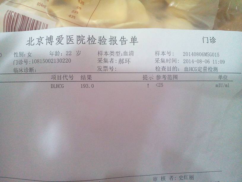 月经推迟了4天,迫不及待的去抽血验怀孕没有,亲们有没有懂看这报告结果的,是否怀上了? 月经推迟了4天,迫不及待的去抽血验怀孕没有,亲们有没有懂看这报告结果的,是否怀上了? 点击展开 你是我的终点 2014-08-06 14:32 为您推荐: 其他回答 好心情有利于胎儿发育的 好医生救人 2014-08-06 14:55 从化验结果来看,可以说明是怀孕了 ,现在要开始补充叶酸,注意多吃水果蔬菜,肉蛋鱼奶,注意保持好心情,都有利于、 胎儿发育的 好医生救人 2014-08-06 14:34 相关问题 末次月经5 21 去医院抽血说是怀孕,医生说现在bc看不出来 可每天肚子都隐隐约约的痛,就像上大便 上个月月经7号来,这月没来两天小腹疼去医院检查抽血等,医生说是怀孕,给开了保胎药,吃了两天药今天上