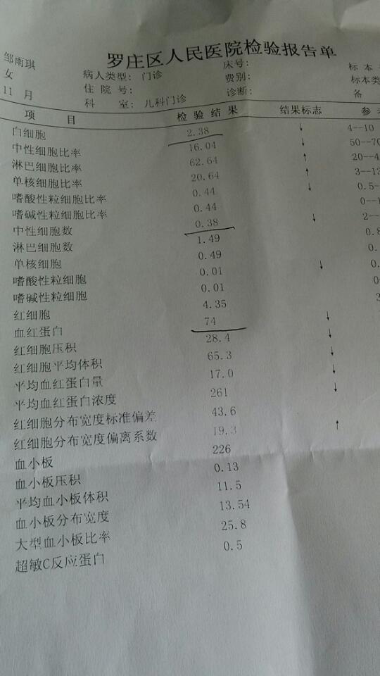 宝宝反复发烧39.5医生说贫血,抵抗力差,谁懂的给看下吧!我应该怎么办啊 宝宝反复发烧39.5医生说贫血,抵抗力差,谁懂的给看下吧!我应该怎么办啊 点击展开 尐づ寶貝 2015-11-25 19:57 为您推荐: 其他回答 发烧好了,吃点贫血的药, 爱加爱。。。 2015-11-25 20:26 应该住院观察了 莘颖麻麻 2015-11-25 20:18 这些数字不用细研究,孩子生病自然下降,好了后会恢复的,按医生说的执行就好了 玲珑小雅 2015-11-25 20:00 到医院看医生 13917367550 2015-11-25 19:58 相关问题 孩子如果贫血抵抗力会低吗易感冒吗 4岁男宝抵抗力差跟缺铁性贫血有关系吗 懂的医生帮忙看一下,我这样是贫血很严重吗?是营养不良引起的吗?