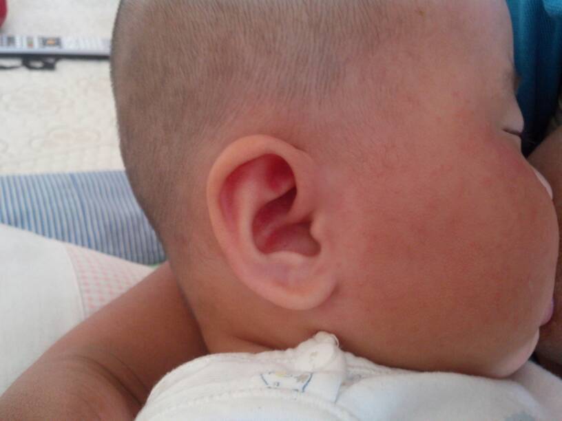我家宝贝七个多月了,脸上起了好多小可可,红的,一片一片的,耳朵里也有但是身上不多,请问这是幼儿急疹 我家宝贝七个多月了,脸上起了好多小可可,红的,一片一片的,耳朵里也有但是身上不多,请问这是幼儿急疹还是湿疹???????急 点击展开 专业奶爸 2014-06-05 07:53 为您推荐: 其他回答 你好,从你描述的情况来看,你家宝宝的咳嗽的情况,多注意休息,可以用点氨溴素、易坦净等,必要时化验血常规,根据化验的结果再合理的处理。 有法律制裁你的 2014-06-05 21:11 相关问题 宝宝十个月耳朵后面脸上红红的一片一片的不是疙瘩,身上的确是疙瘩是怎么回事? 宝贝出生就起了热痱子 后来我给涂了点痱子粉 身上好了 脸上就成了干的一片一片的了 怎么办 急,急!宝贝脸上的半边脸全红了,一片一片的,怎么回事啊!