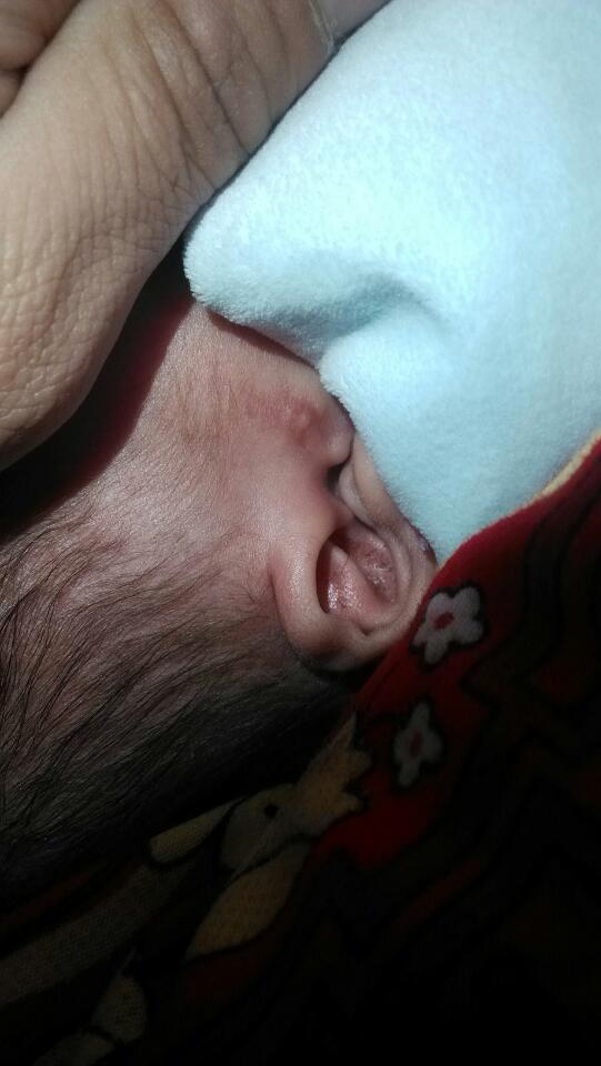 刨妇产的时候不小心手术刀碰到宝宝耳根两刀后来好了,不过又起了像脓包的疙瘩一样是什么?