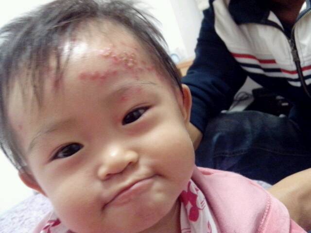 宝宝这几天额头上长了好多痘痘大的东西,红红的,起先只有一点点红红的,疙瘩也不明显,这几天疙瘩大了些