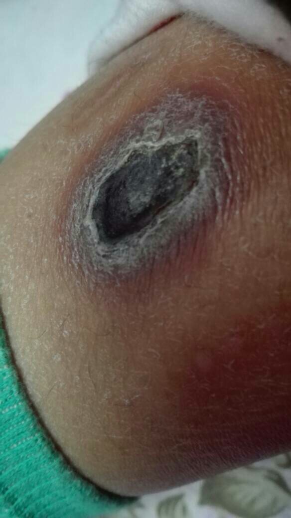 孩子腿不小心得开水烫了,都快好了,俗话说就是定嘎波(结痂)了 但最近孩子说伤口一碰就疼,还发热,是