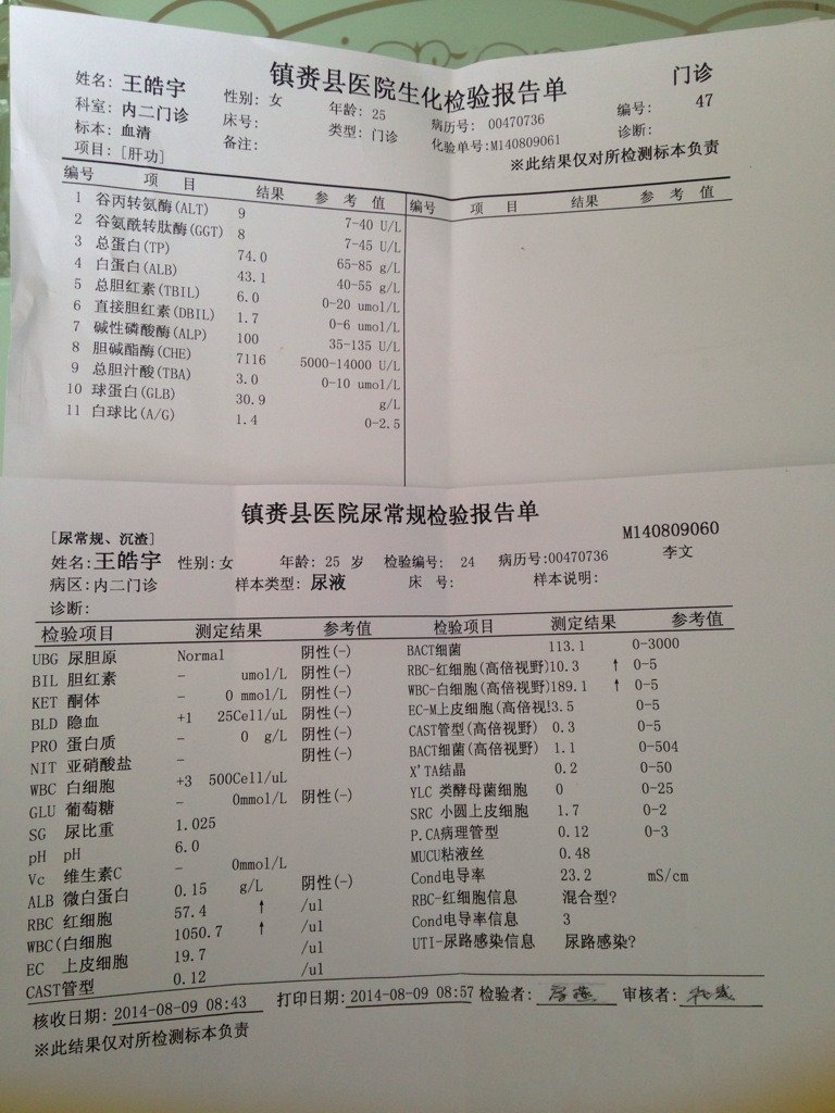 刨妇产一个月零几天,腿浮肿一直没下去,口渴,总喝水,不怎么上厕所,一天一次,不超三次 这是结果 帮