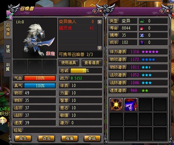 桃花源记变异狼人宝宝潜质 这个能算好的吗?给个意见 用不用洗了? 点击展开 匿名用户 2012-10-04 00:17 满意回答 洗了、两个技能才5152、物攻太低。 邴文石_aa3U 2012-10-06 17:51 宝宝知道提示您:回答为网友贡献,仅供参考。 为您推荐: 其他回答 应该洗物攻潜质高的,起码要稀有才可 匿名用户 2012-10-08 10:26 再洗洗吧 匿名用户 2012-10-04 10:25 不算好,资质除了体力其他都不怎么样 匿名用户 2012-10-04 04:20 相关问题 桃花源记 怎么洗宝宝成变异或稀有 桃花源记其它宝宝加点要加体质或意志吗,加哪个好,还是全加潜质好的那个? 《桃花源记2》宝宝既有连击又有高级连击,能提高触发吗?