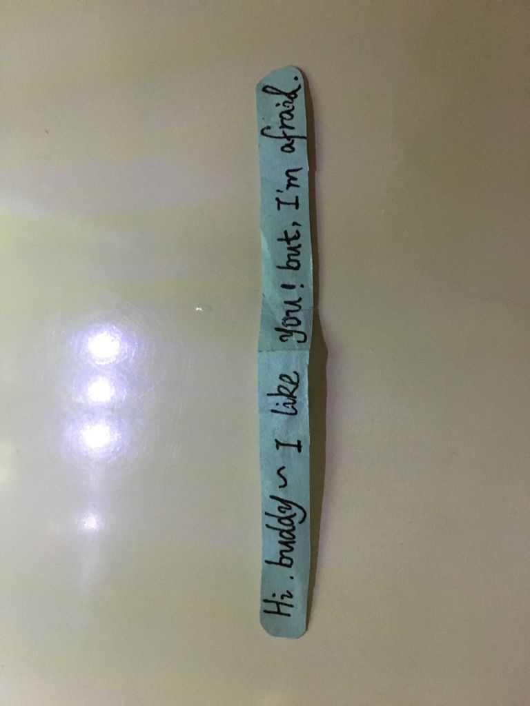 一个女孩送我礼物里发现纸条 大概意思懂但是另一面不懂,求英语高手翻译 点击展开 匿名用户 2015-11-20 00:52 推荐回答 大概翻译如下:我喜欢你,但是我害怕。 我们还可以再见吗? 匿名用户 2015-11-20 00:55 宝宝知道提示您:回答为网友贡献,仅供参考。 为您推荐: 其他回答 嘿,朋友,我喜欢你,不过,我有点害怕,我们能再约吗 匿名用户 2015-11-20 00:54 她喜欢你 匿名用户 2015-11-20 00:53 相关问题 求高手翻译!!!谢谢,朋友给孩子海外购买的,看不懂!!! 请教各位英语高手,想问一下“ X X 中心幼儿园”用英语怎么翻译? 请英语高手翻译以下一段话 杭州市居民“压力”对二胎生育观影响的实证分析 就以上这个标题 感谢