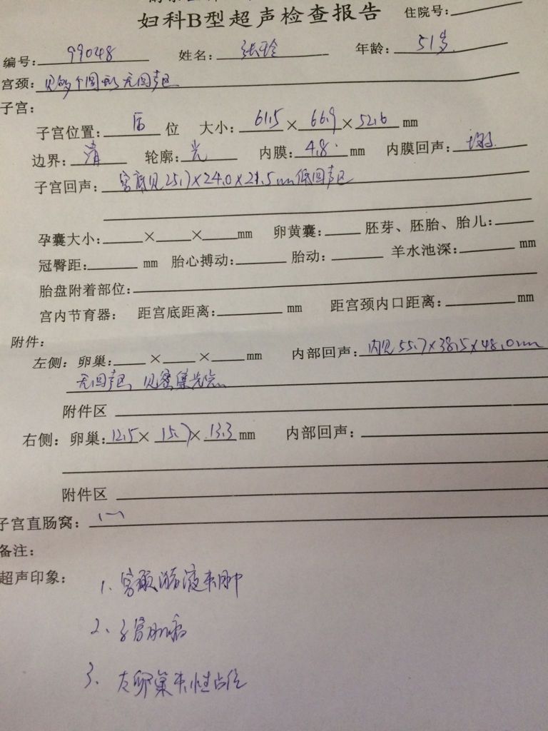 我家老婆婆昨天去医院做B超,说有子宫肌瘤,麻烦大家帮我看看,还严重啊?谢谢了! 点击展开 匿名用户 2016-04-23 09:39 满意回答 进行检查,出现子宫肌瘤的症状,应该是属于比较小的症状。同时可能出恨细现巧克力囊肿的舞命症状,是属于比较大的症状,应该注意观察,积极进行治疗。定期进行复查。必要时可以考虑进行手唉堡剩术治疗。 太阳荣华医师 2016-04-23 09:41 宝宝知道提示您:回答为网友贡献,仅供参考。 相关问题 昨天在医院检查,有子宫肌瘤,这样可以怀孕吗? 怀孕后子宫肌瘤会随着雌激素的增长一直长大吗?我孕前三个小肌瘤,昨天孕39天B超竟然五个了,是不是一 怀孕8周了,昨天照B超,孩子胎心胎芽都正常,但是发现我还有一个两厘米左右的子宫肌瘤,会对孩子有影响