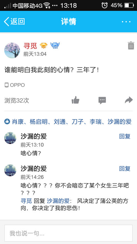 我在QQ空间里发的说说!女孩给我回复你是不是暗恋某个女生三年吧!我回复她:风决定了蒲公英的方向